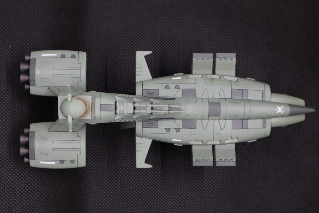 スジボリ初めてしました。細いプラ棒やプラ板、デカールを追加してディテールアップしてます。スラスターはジオリジンのファルメルが4個だったので4個にしました。