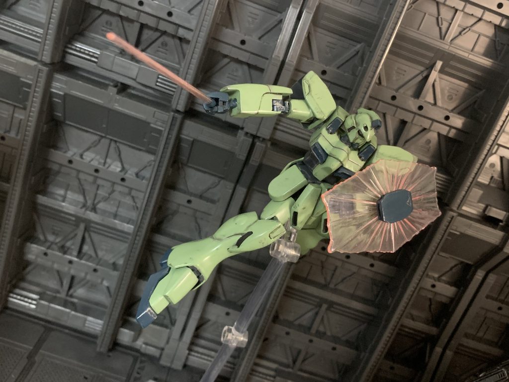 ビームライフルのフォアグリップを可動するように改造して両手持ちできるようにしました…が、肝心の左の持ち手パーツが行方不明だったのでそれっぽく写真撮って誤魔化してます