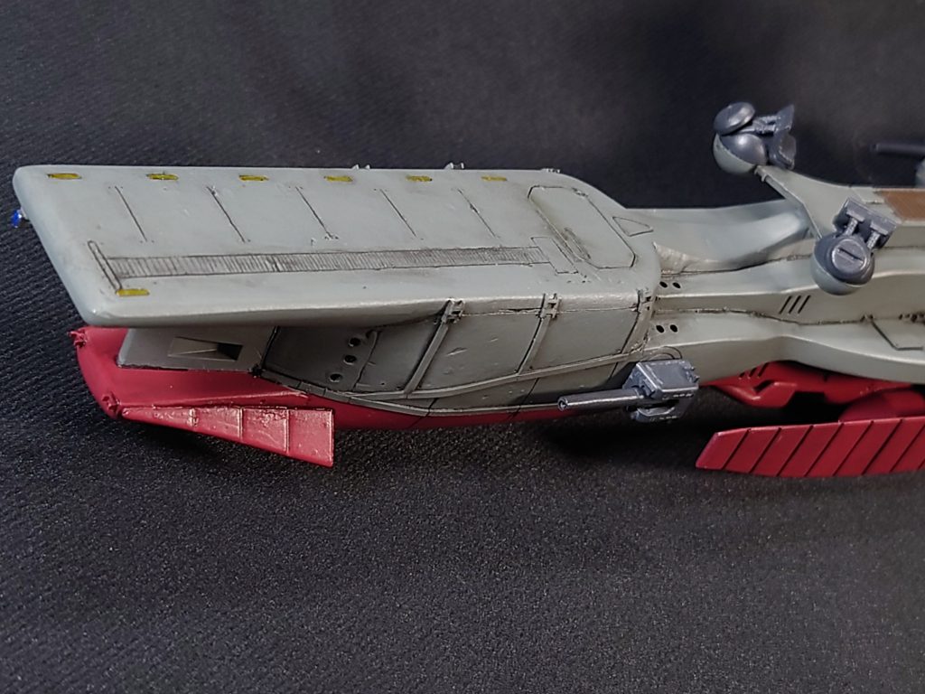 艦橋レーダーや機銃座の差替え、全般のディテールアップに増強エンジン、艦底の作り込みに放熱板の思い切った配置変更etc.、勉強になりました🙇♂️