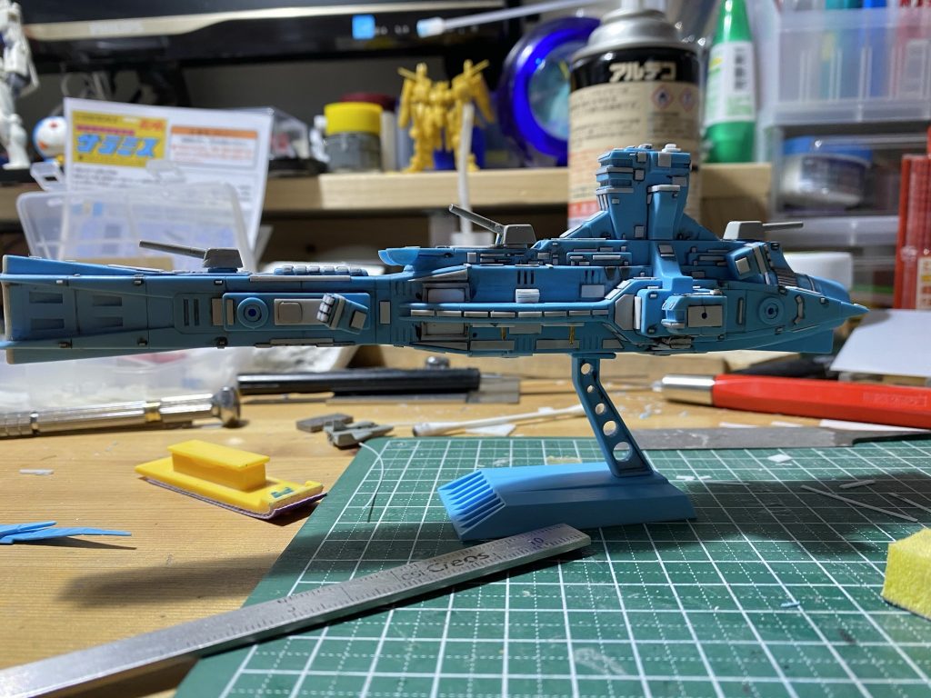 旧キットのサラミスをネットの作例などを参考に武装増し増しで作ってみました。