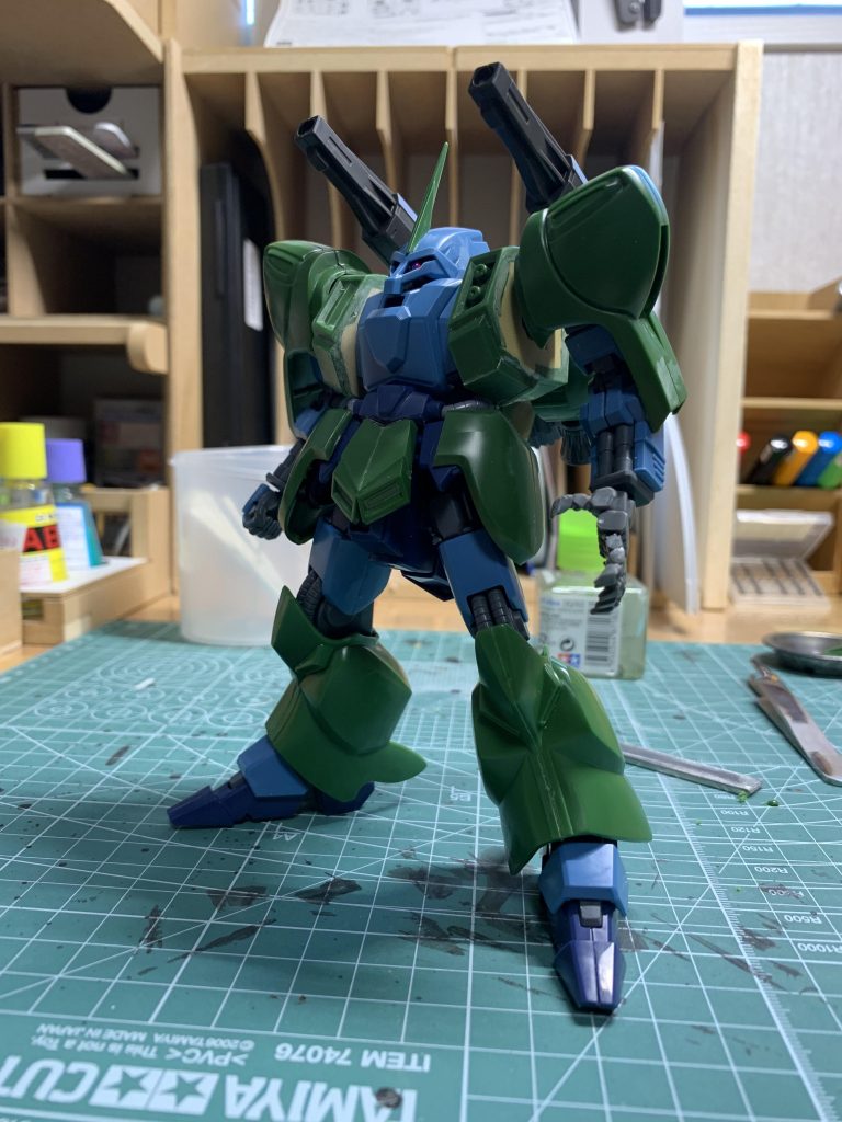 全身にスジボリをメインにしたディテールアップを施し、メインカラーは2色のグリーンで塗り分けてあります。