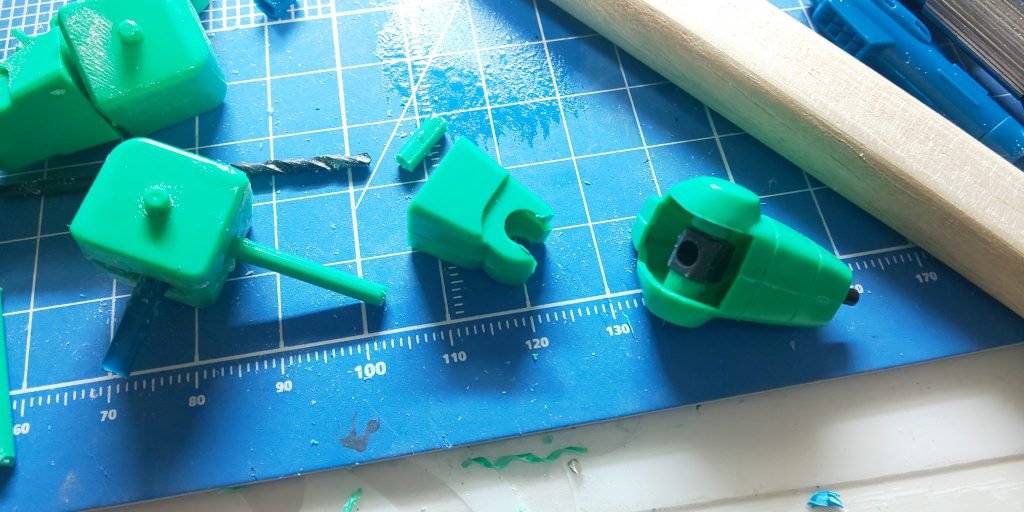 指が可動するタイプだけど握れないのでネオジム磁石を手のひらとグリップにつけて落ちないように!