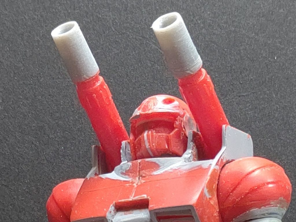 素晴らしいの一言です。形もさることながら、彩色もイメージピッタリです。できれば、そのカラーレシピをお教えいただけると嬉しいです(キャノン部分のグレー部と肩や肘などグレー部は特に。)