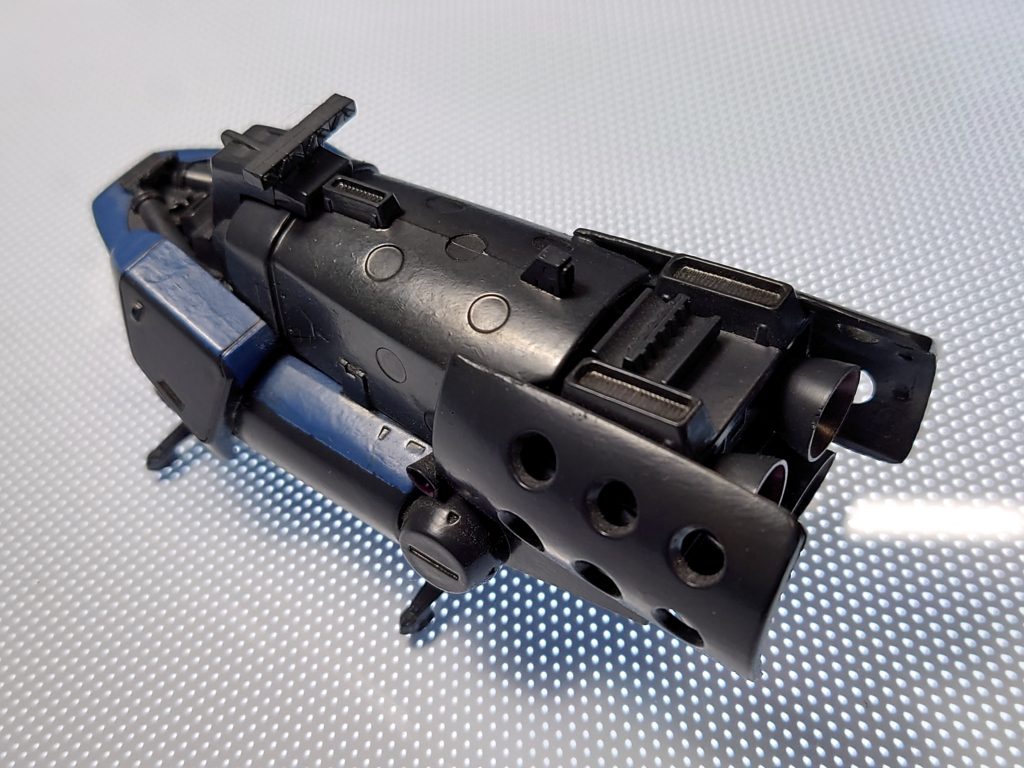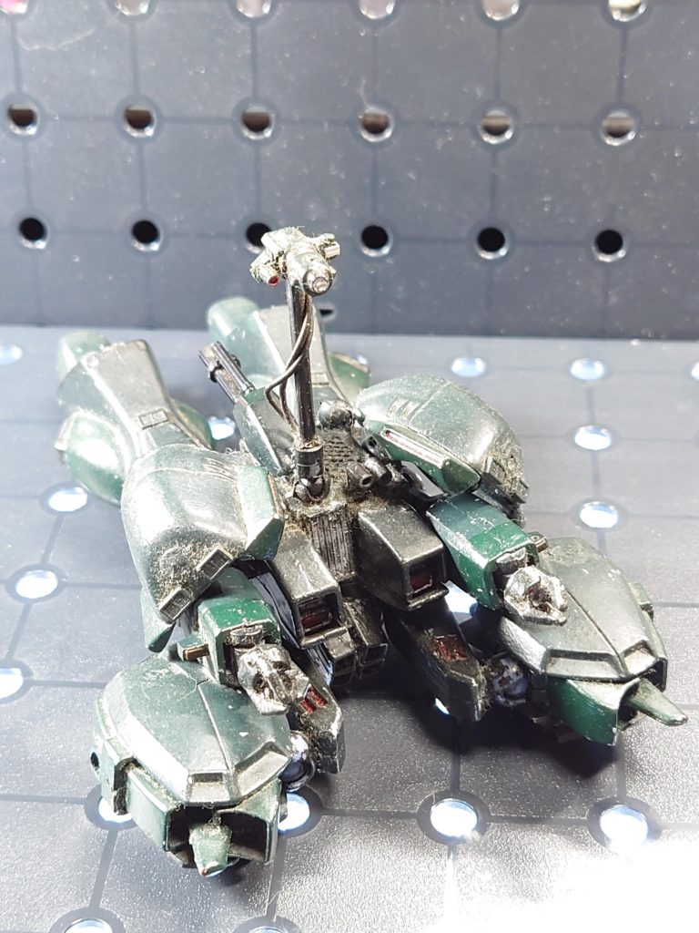ぱっと見の印象で、リックディアスにゲーマルクのマザーファンネルが肩アーマー?後輪代わりの肩パーツは連邦系なんでしょうけど、これは近いものが想像つきませんでした。