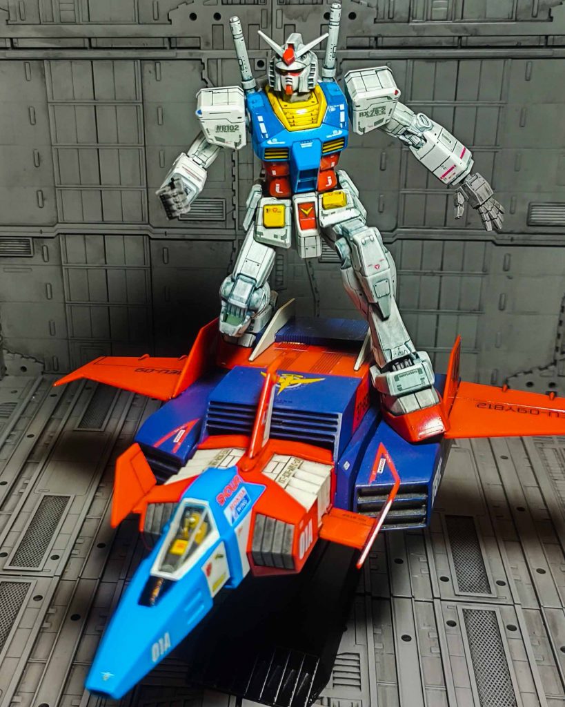 2021年の再販で「旧キットGファイター」を購入できなかったので以前作ったGファイターを分解して今の自分のテクニックで作り直して「Gスカイイージー」を制作。「G30thガンダム」を乗せました😍