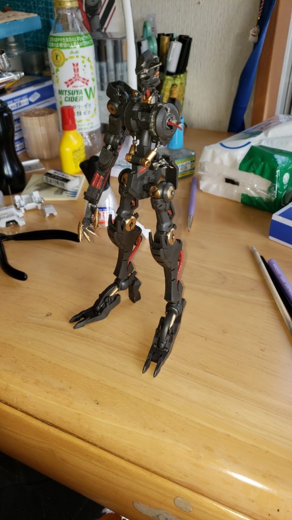 塗装した部分はガンダムフレームのボルト?部分や、ピストンシリンダー、動力パイプ、ダメージ加工した部分などです。