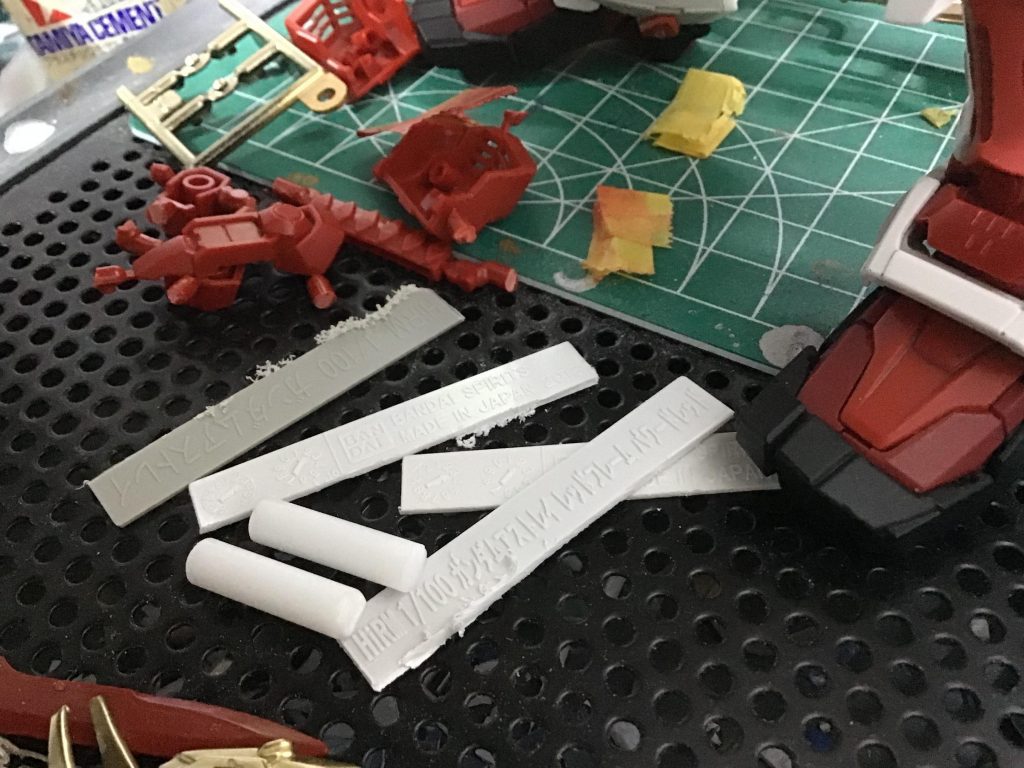 アームパーツの自作部分は、ランナーのタグを切り取ったモノを貼り合わせてベースにして、5ミリ径のプラパイプと、市販の関節パーツのボールジョイントの物を使用して関節部を作ってます。