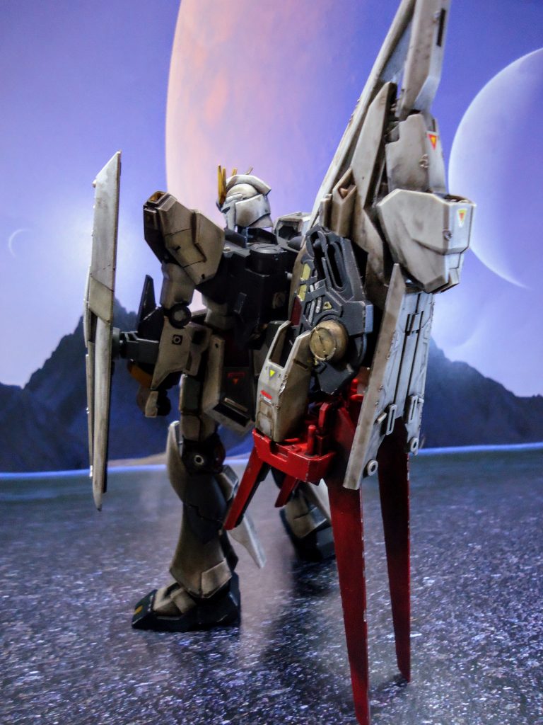 fullereneさん>只今帰投しました!ご無沙汰しております。ダメージ表現は低温半田ゴテを使用して単調にならないようコテ先冷ましながら行いました。巨大ファンネルはベースはパーフェクトグレードのガンダムの肩、MGのエールストライカーのエンジンを流用しているので勿体無いお化け仕様となっています。次回作も宜しくお願いします。