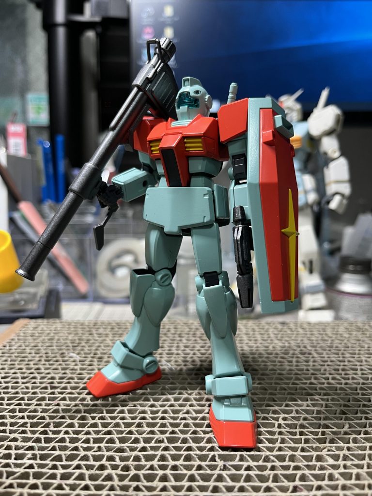 これはカッコいいGM。EG使うと雰囲気全く違いますね!! 耳の流用パーツ、ナイスです(マトモにディテールアップすると大変ですよね) &オリジナルの膝もグッドです。