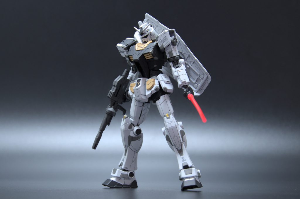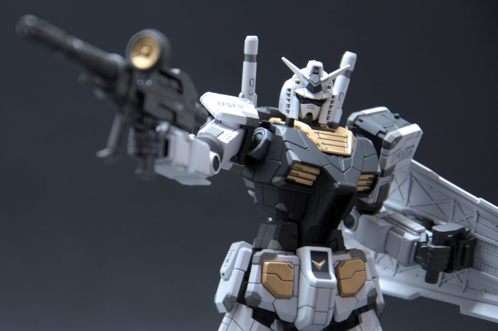 モールドびっしりの横浜ガンダムなら白・黒・金の配色が似合うんじゃないかと思い制作。情報量が多いながらもシックなガンダムに仕上がりました。