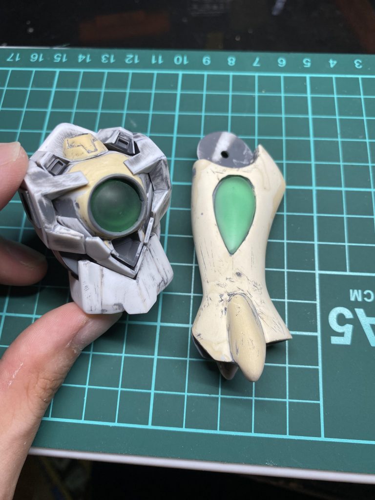 クリアーパーツのアップ。原型を用意した後、型を作りそこにクリアーレジンを流して作りました