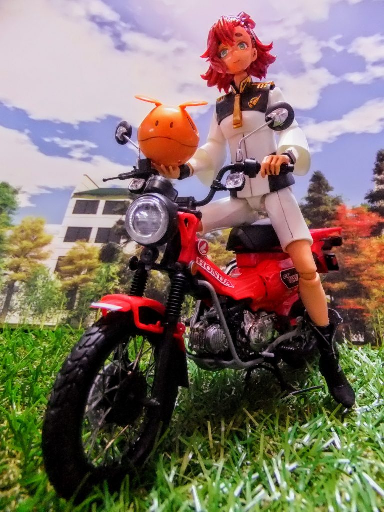 暇つぶしに製作したカブのクオリティー!乗車姿がとても可愛く似合います。