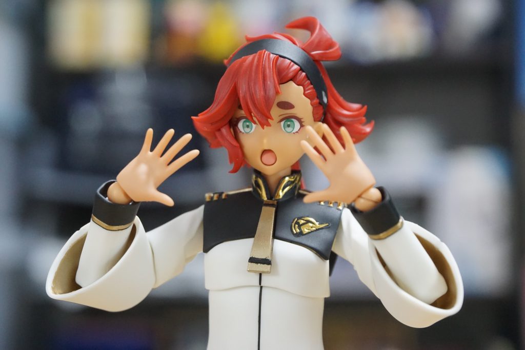 眉部分を切り取ってハの字にしました。汗のエフェクトは別のプラモについてた水転写デカールを流用。可愛く仕上がってくれました。