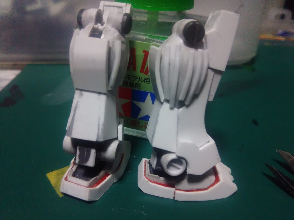 基本はプラバン、プラペーパー、プラパイプ等です。脹脛だけパテを使いました。