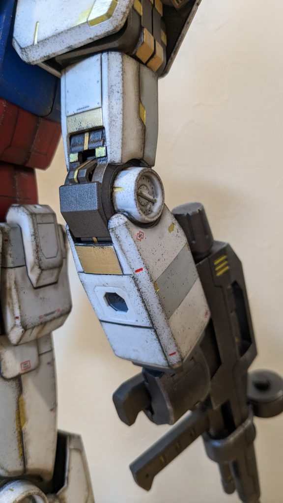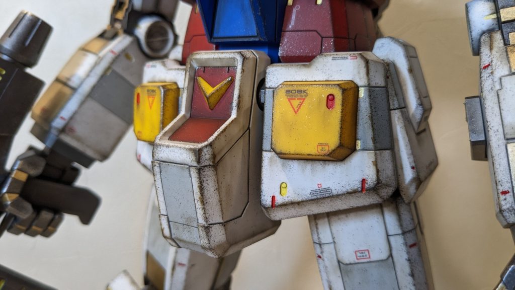 4アーティストマーカーを溶剤で溶いて筆塗り→ガンダムマーカーとウェザリングマスターで渋い輝きが表現できます👍