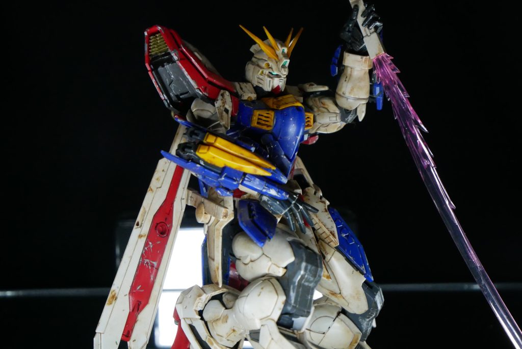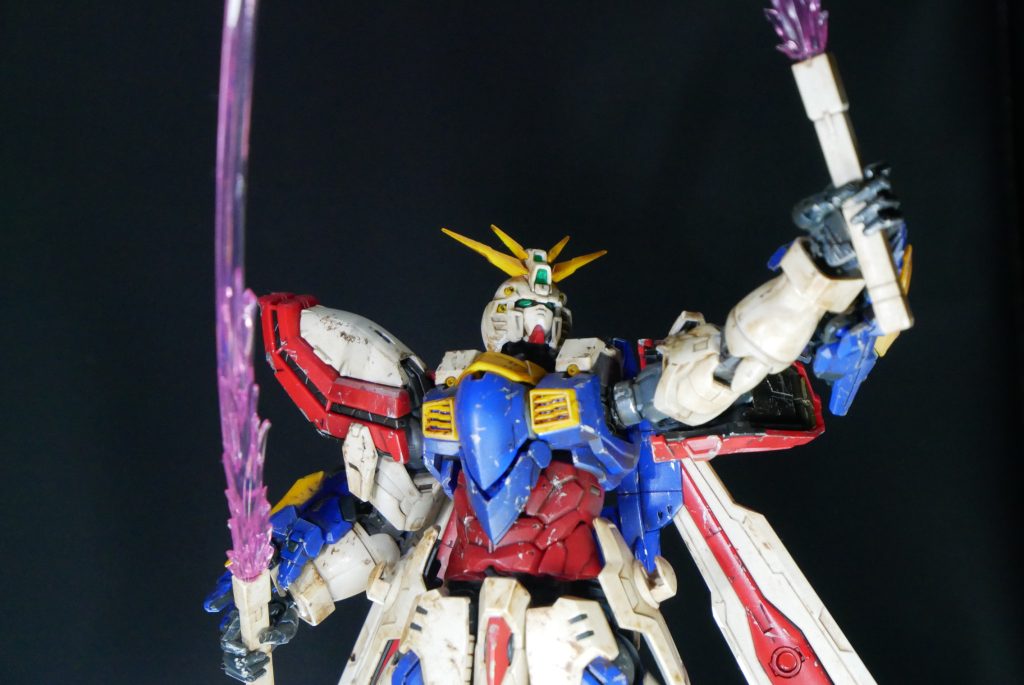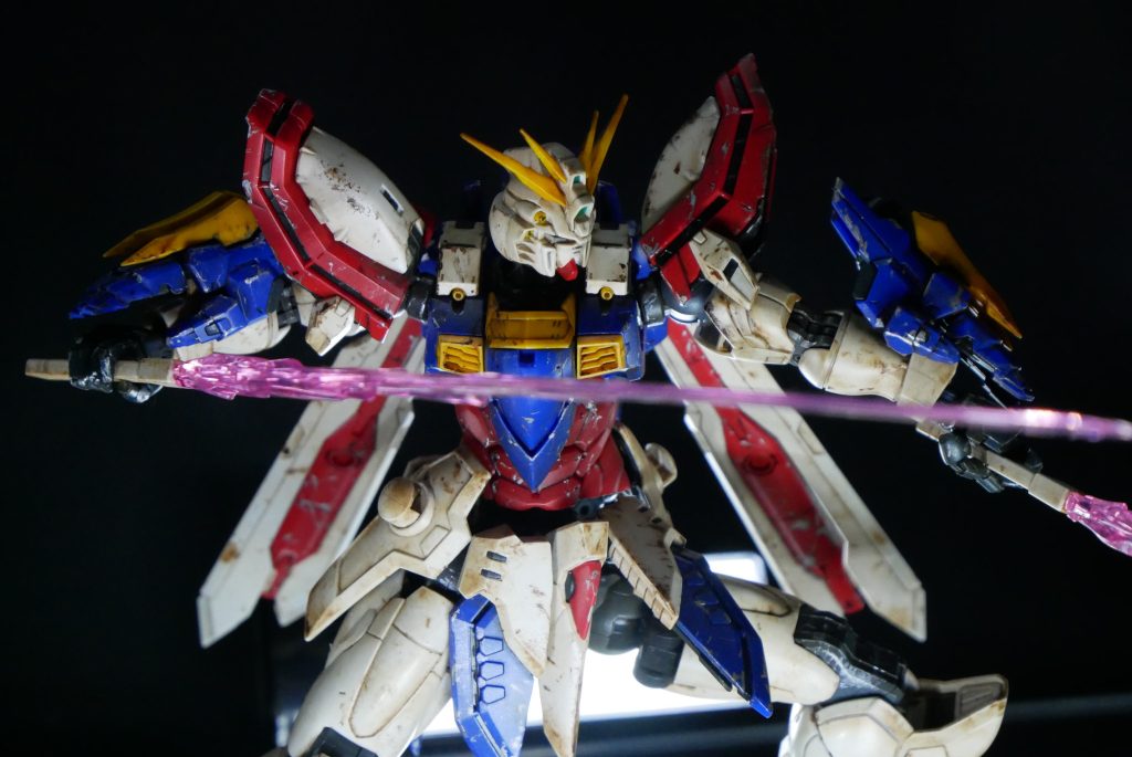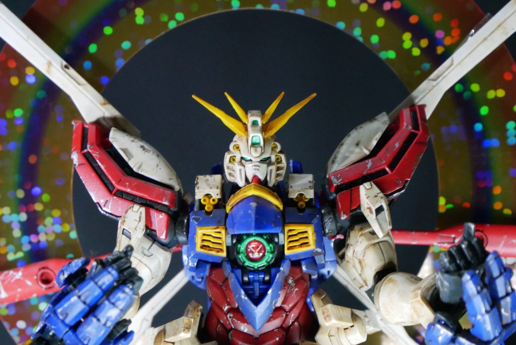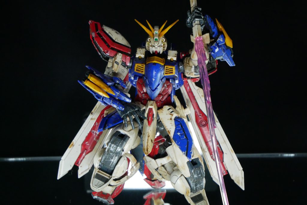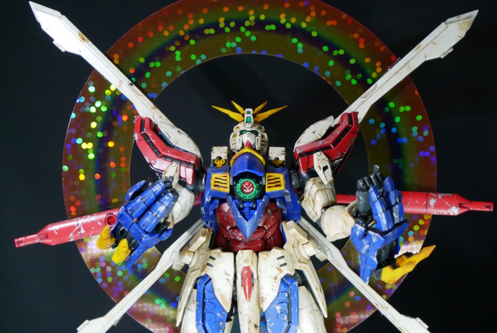 機動武闘伝Gガンダムよりハイレゾルーションモデル ゴッドガンダムです。購入当時からほっぽらかし状態だったので、ロストマウンテンから掘り出してきました。ハイレゾは、グロスインジェクションが特徴なのですが、自分には何かテカテカ感が安っぽく見えて、戦うモビルファイター感を出せたらと思い、半光沢+ウェザリング、一部塗装仕上げにしてみました。ちょっと汚しすぎたなw。