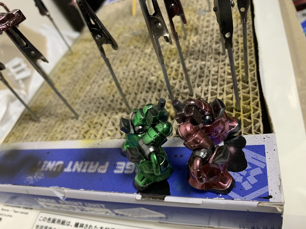 過去作品です。モビルスーツアンサンブルの量産型ザクⅡをメッキ塗装しました。