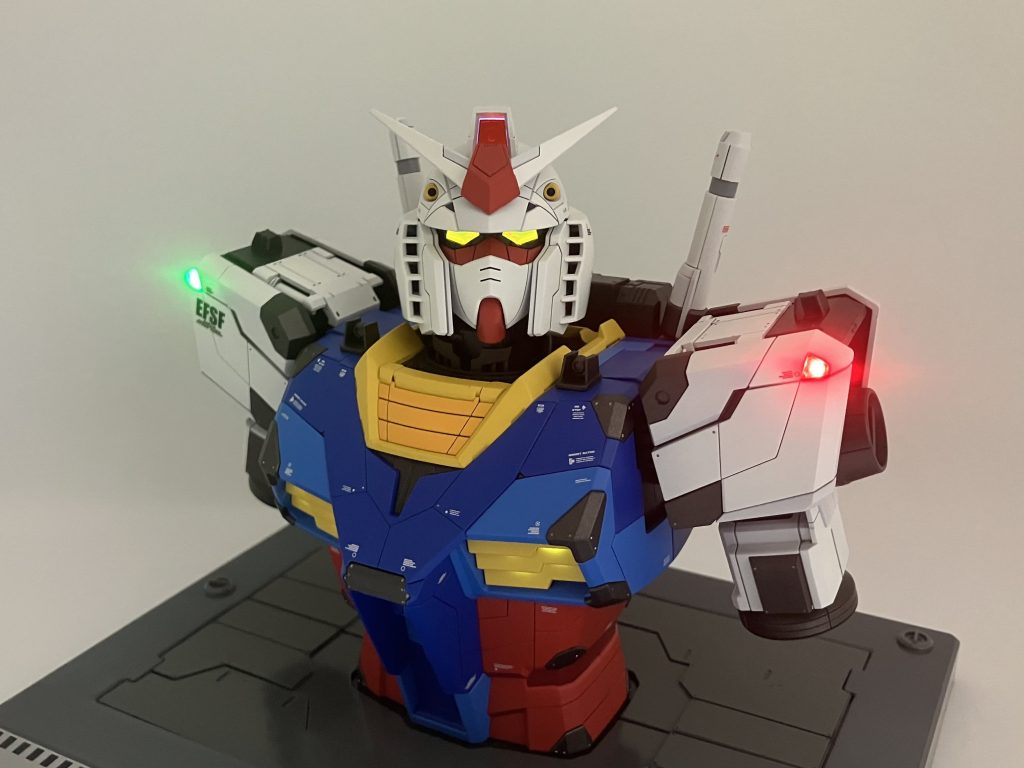 両肩と胸部ダクトにLEDを仕込んで光らせました。(目は元から光ります)