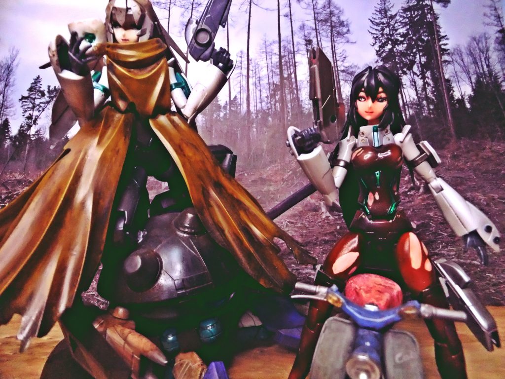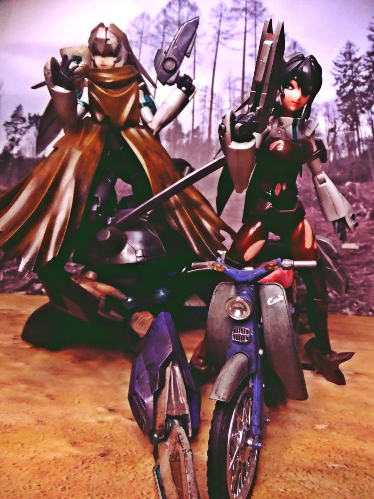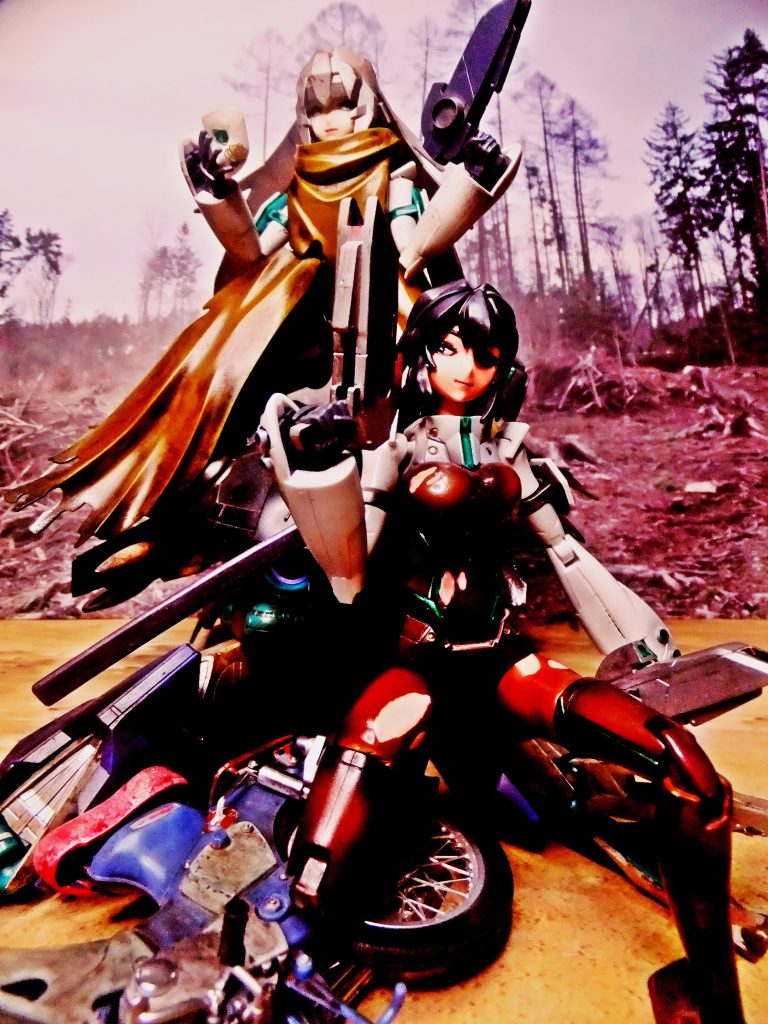 奥川のメイさんが身に纏っているのは確かコトブキヤのクラッシュマントだったでしょうか?背景とみごとに似合ってますね。