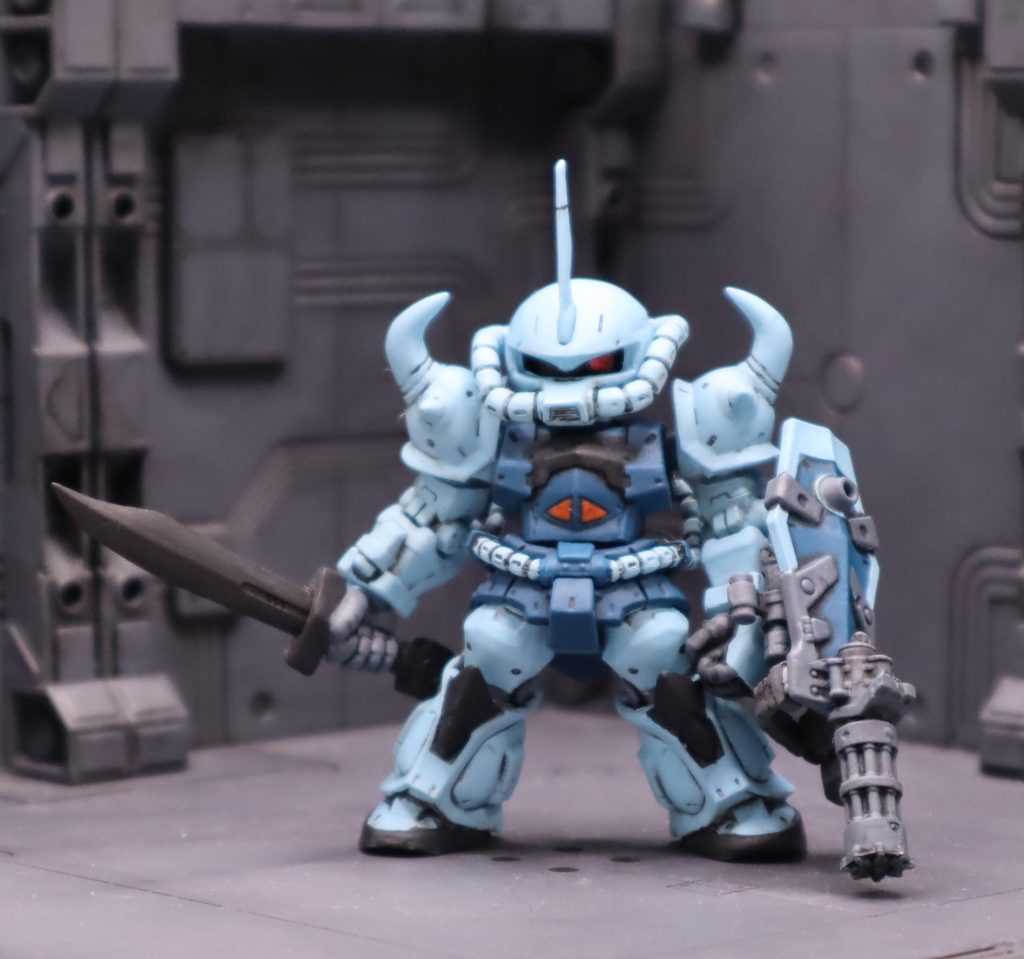 ガンダムコンバージのグフカスタムを一部(盾に穴をあけたのみ)改造後、塗装しました。
