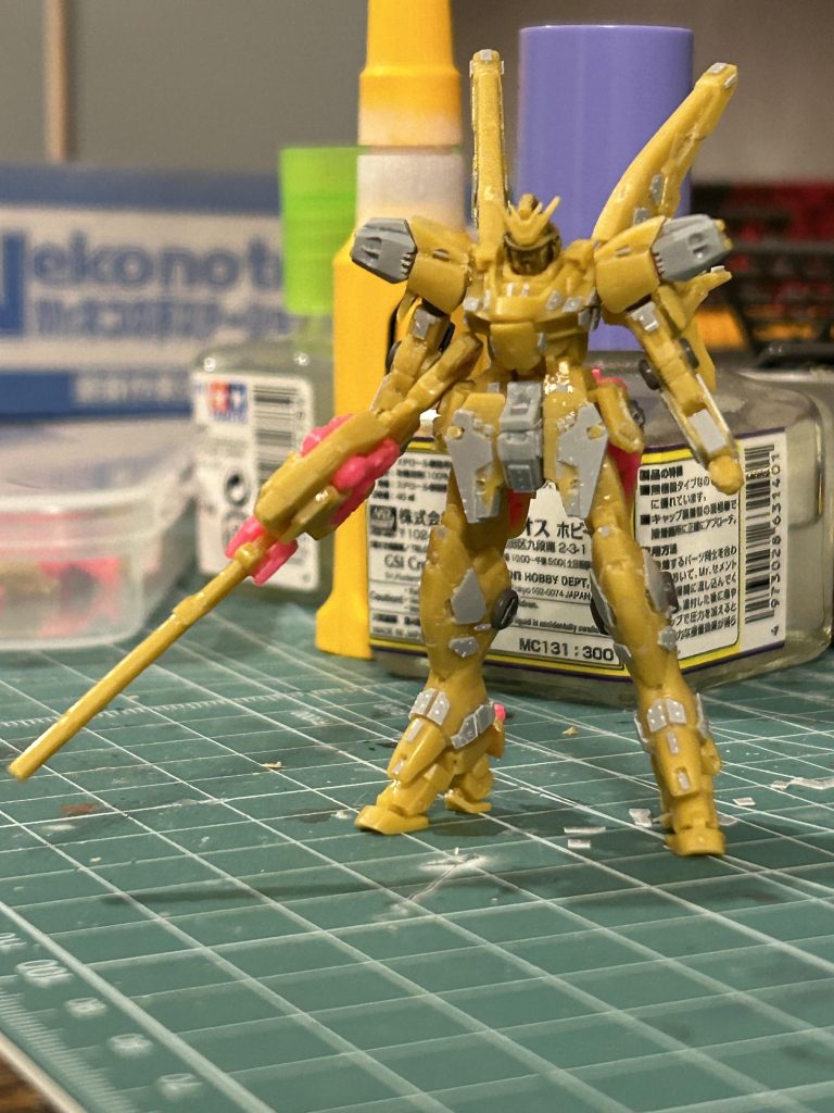 ミノフスキードライブユニットの下側に付いてる翼は切り取るべきだったのかもしれませんが、迷った末に自分の好みで残しました🤣
