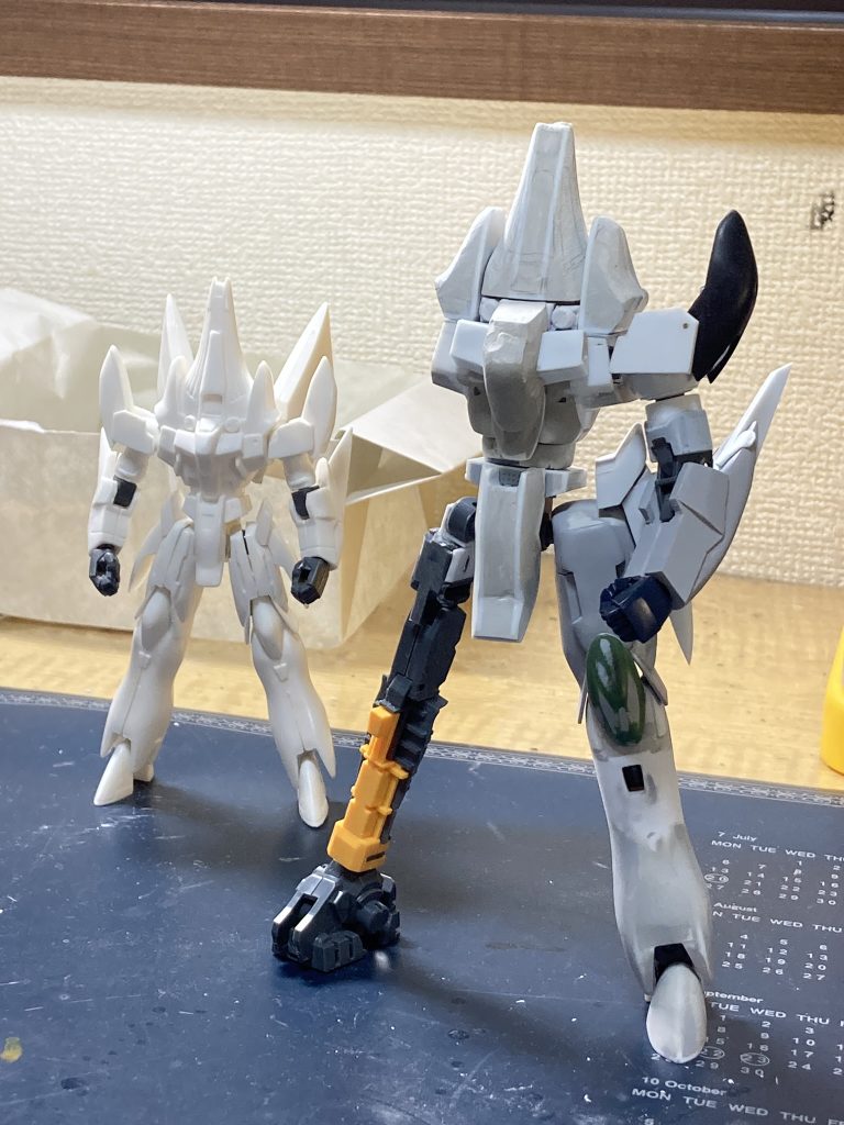 1/100 のトーラスはガレキしか存在せず、オーバースケール気味であったため、トールギス Ⅲと並べる前提でボリューム感にこだわってスクラッチしました。差し替えで変形します。