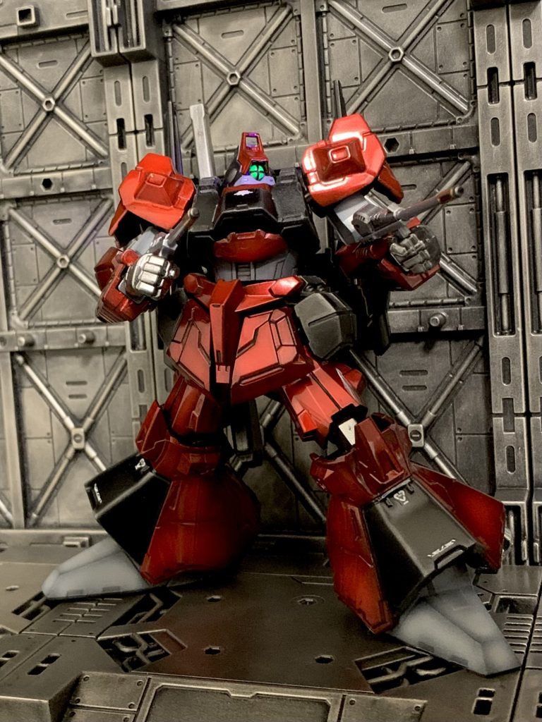 最後に、今回もっとも苦労したことを。Gフレームは塗装後に武器を持たせると『2度と離さない‼️』とラブラブな状態になります。ゲルググは諦め、リックディアスは手をニッパーで割りました。ヤスリで中を広げることをオススメします。