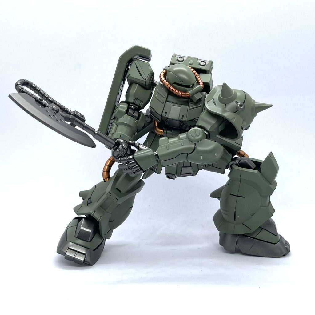 Commission work by @neorainsky on Instagram. Zaku II Kai is the most recent Zaku-type MS from the G-Frame Shokugan line by Bandai, which grants it the latest armor sculpt design of Zaku-type MS for the time being. Not wanting to miss out this freshly designed Zaku-type MS armor sculpt, I decided to give this toy my new own color scheme. I will be glad if you find this color scheme quite decent-looking. 🙂