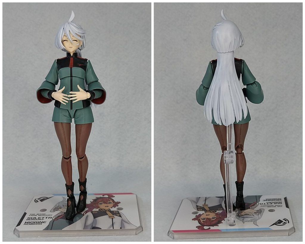 今回、以前作成したスレッタも合わせ目消しをして、つや消しトップコートでリニューアルしました。