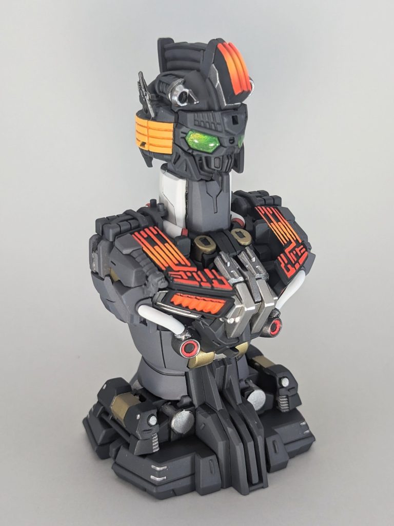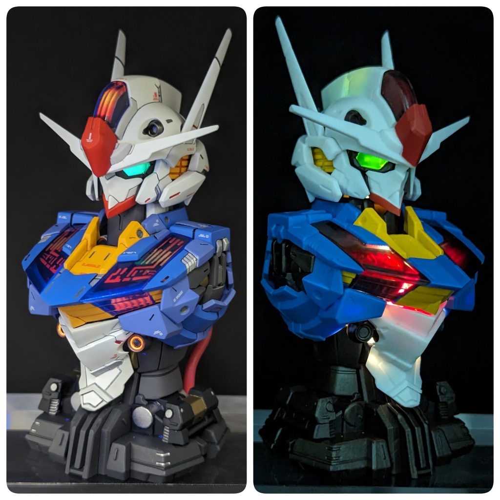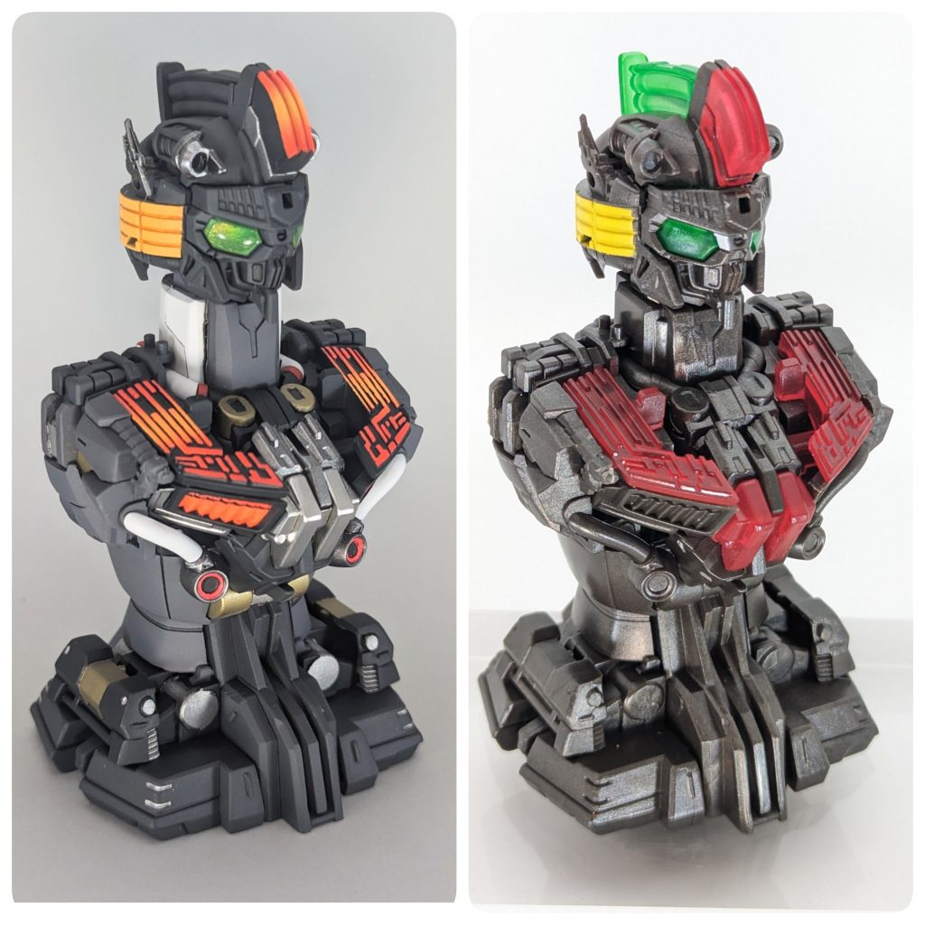 ツインアイ、カメラアイはホログラムフィニッシュシートを貼り、UVレジンを盛って塗装していますので、キラキラ輝きます。