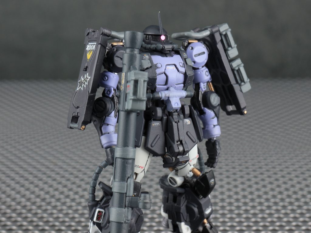 ガンダムアーティファクト 017 高機動型ザクⅡ(ガイア機/マッシュ機)を制作しました。 合わせ目消し、甘いモールドを彫り直しで仕上げました。 ラッカー系塗料で塗装しています。 基本色をエアブラシ塗装、細部を筆塗りで仕上げました。 モノアイはメタリックシールです。 展示用台座も制作しました。 各種マーキングはバンダイスピリッツ製「ガンダムデカール用」「ハイキューパーツ」「スジボリ堂」の製品を使用しております。