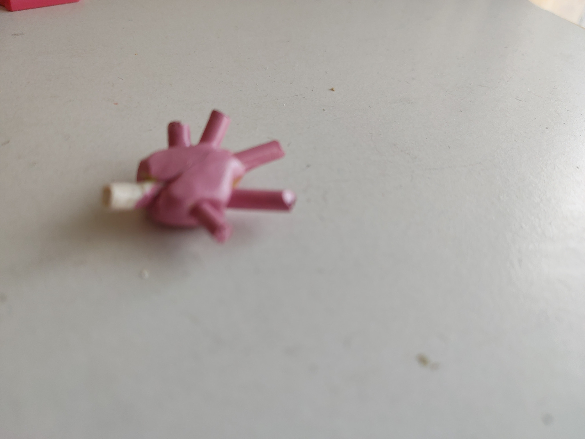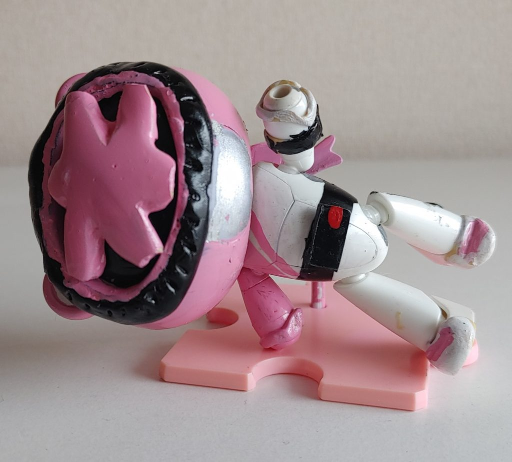通常、プチ×戦隊の女性キャラクターには、リボンを付けますが、そのままだと、背面のエポキシパテ製タイヤがリボンに被るので、リボンに接着(*´∀`)♪