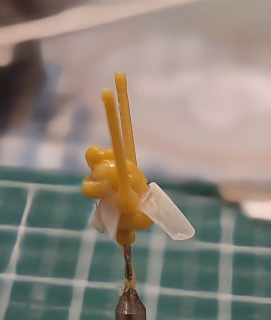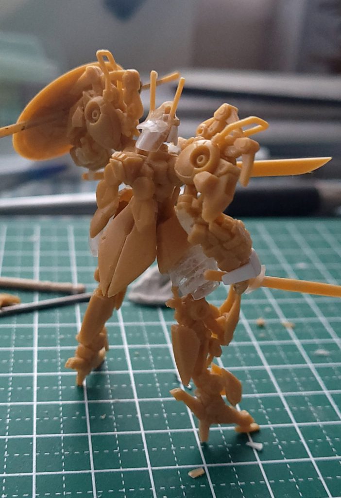 後ろは、ネイルチップを使用。角は、シールドについてたビームサーベルを使用。首もとに針金でディテールアップ。