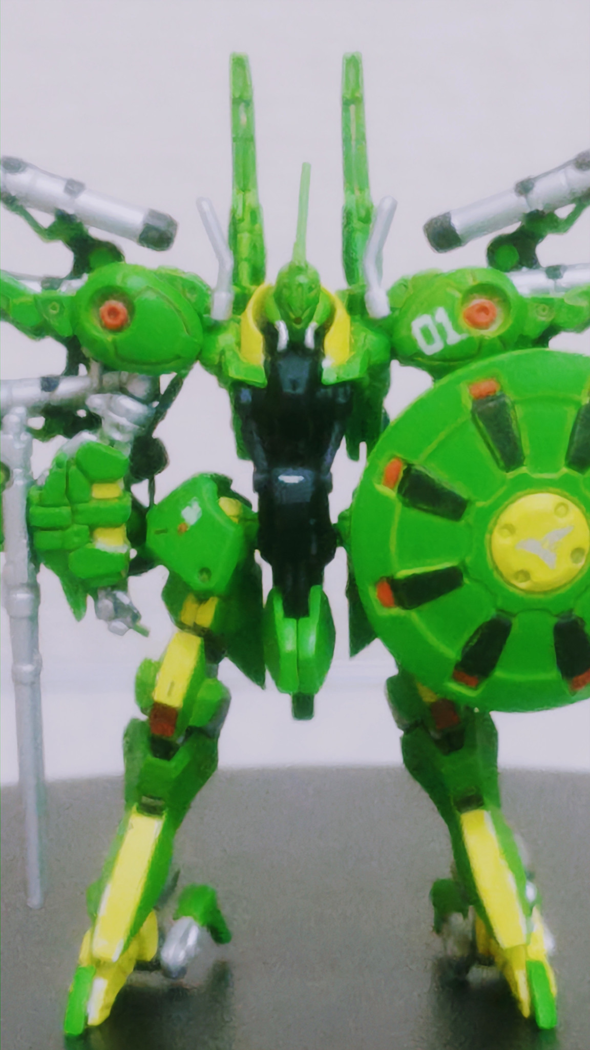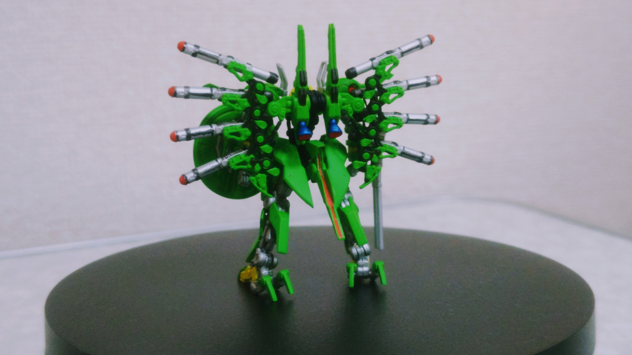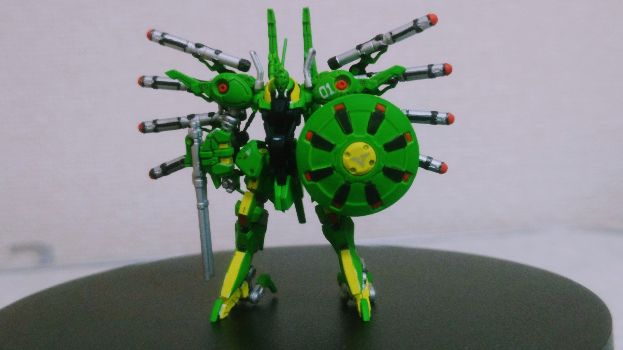 メインの緑はタミヤアクリルカラーのライトグリーンです。緑系塗料でパラス・アテネのイメージに合う緑ってのが中々見つからない中出会ったのがこの子でした。