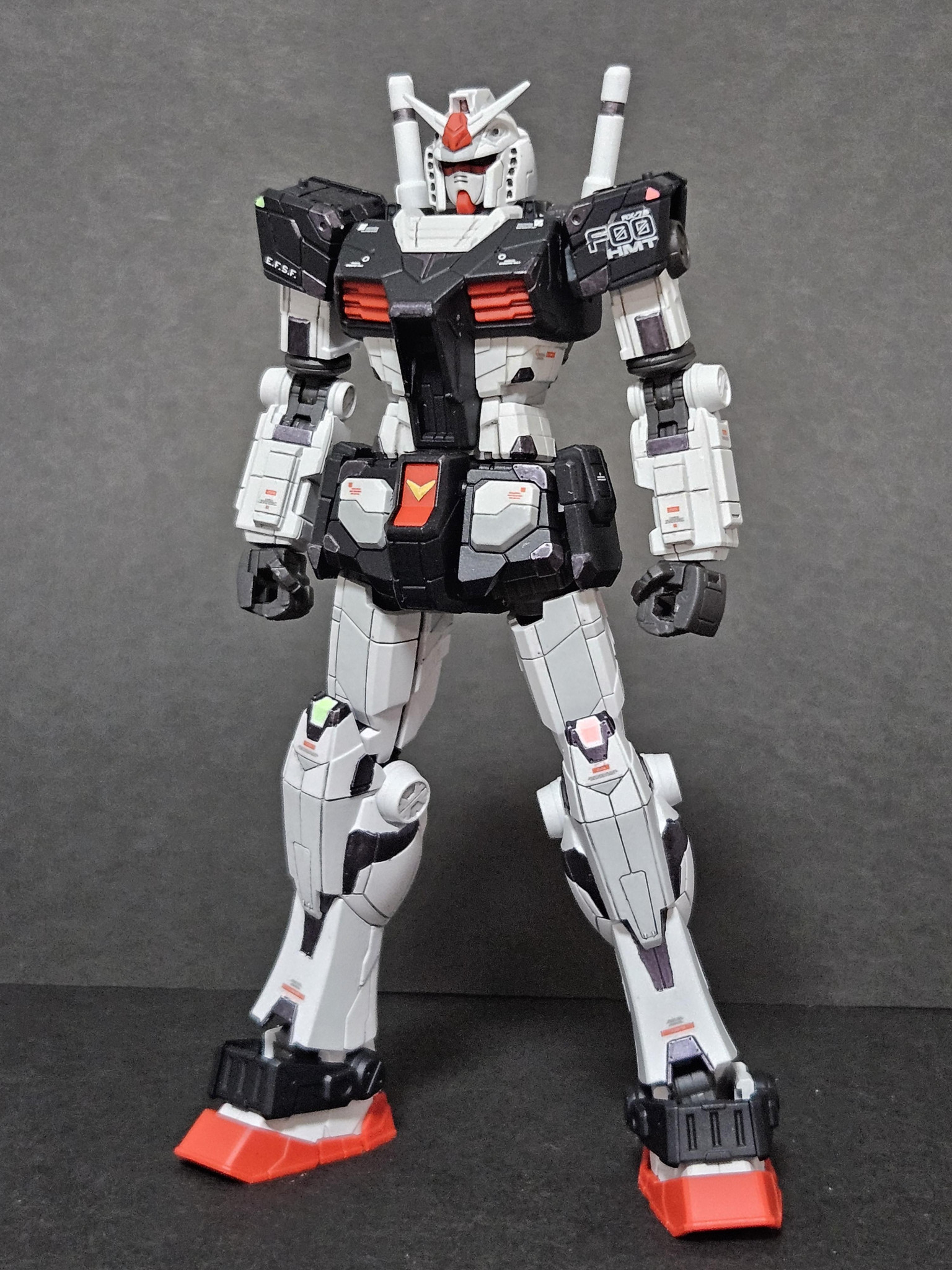 動くガンダムの実物の配色を参考に、筆で部分塗装して塗り分けてみました。