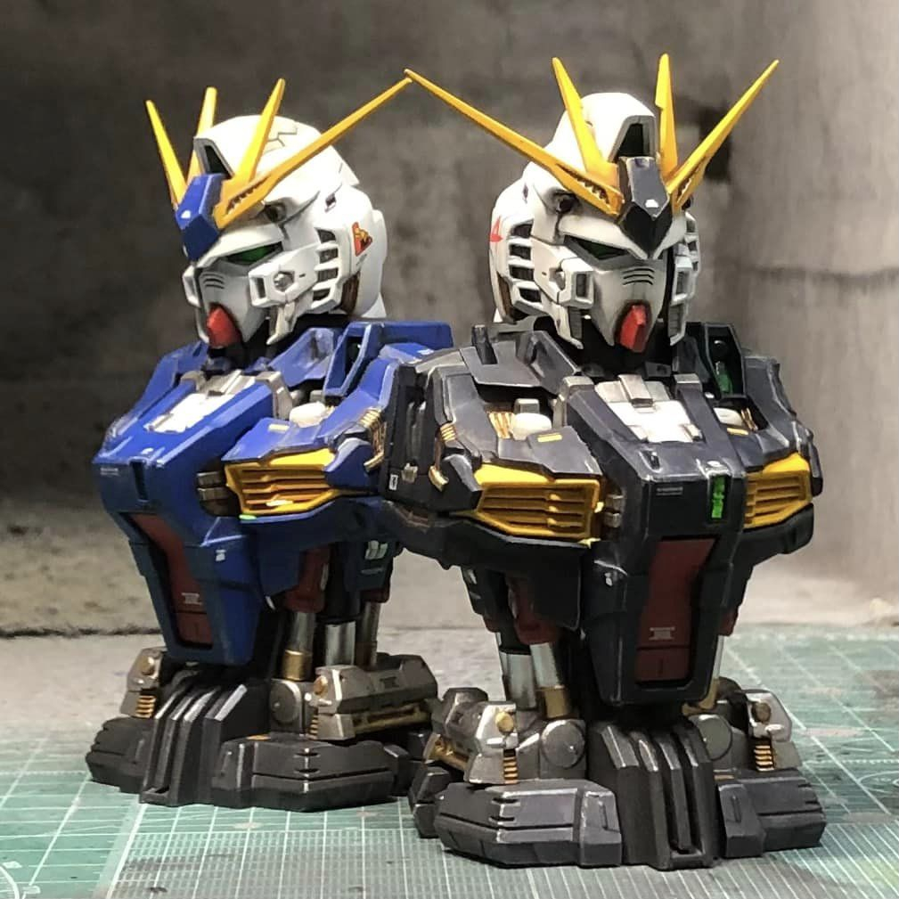 メカニカルバストのνガンダム、大変イケメンなので、この度はノーマル版、福岡版、Hi-νガンダム風味の3パターンを作ってみました。塗り分ける毎に明快になっていく精緻なモールドも魅力です。