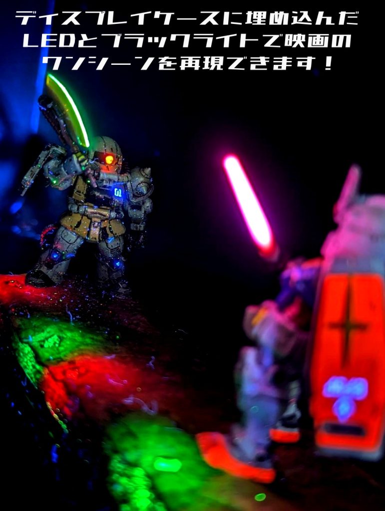 エクリプスやイモジャには目もくれず、ザクとガンダムを仕事終わりのイオンでGETし映画の雰囲気を再現できるジオラマディスプレイケースとセットで製作してみました