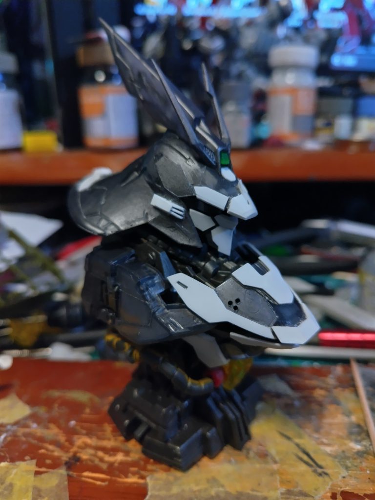 閲覧ありがとうございます。塗装ですが、かなり面倒だったのですが、サザビークリアパーツだったので最初は隠蔽力の高いガンメタを裏地に塗っています。