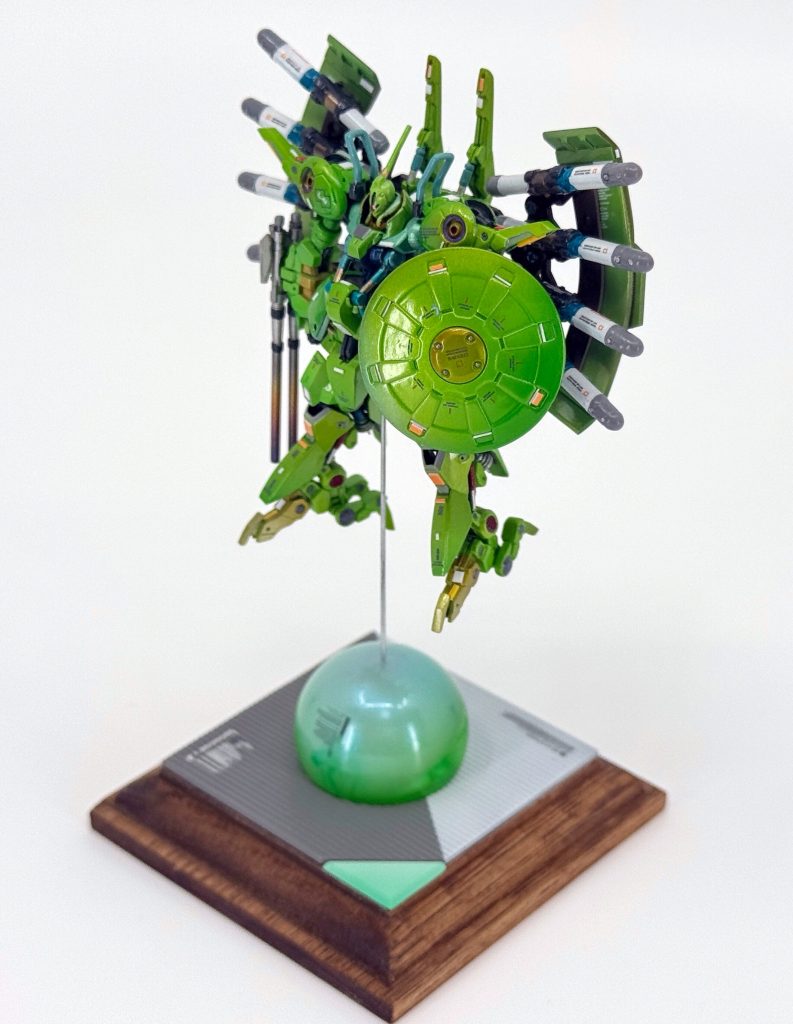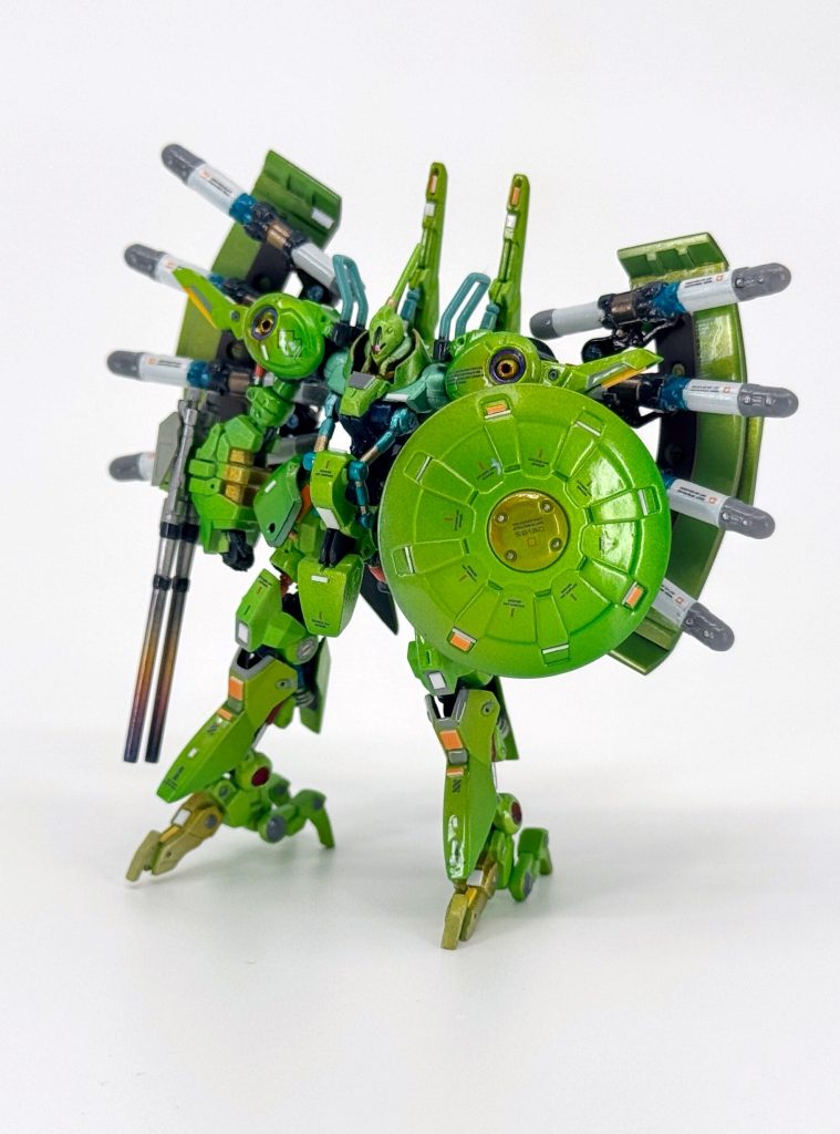 ガンダムアーティファクトシリーズの続きになりますが、パラスアテネをご紹介。こちらは偏光カラーのイエローグリーンで塗装しグロスコート仕上げと前の2機とは違う形で製作してみました。