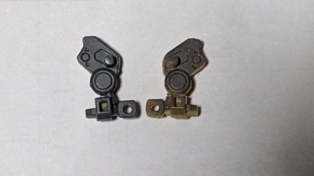 ヘルメットの下側の出っ張り、モノアイの上部、頭部を差し込む首パーツの上部です。