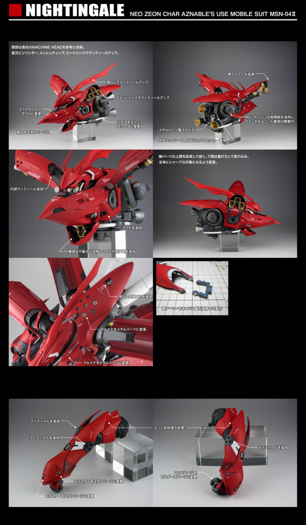 SAT その他 2024.12/30更新 RE/100 ナイチンゲール 1072 128 いいねしたモデラー(128) 3 3 作品を共有 2017年制作。RE/100 ナイチンゲールを製作しました。非常にボリュームのあるキットですが、全体に大味な作りになっています。腰高で棒立ちな印象のスタイルの変更を中心にディティール、ギミックの追加を施しています。出渕氏のイラストのような低く前傾した姿勢を目指し改修しました。 ナイチンゲール RE/100 コメント コメントをして応援しよう コメントにはログインが必要です @BasketmanRyohta 7か月前 こんにちは、とてもカッコいいナイチンゲールですね!フォローしました! 最後の解説画像を開いたのですが文字がぼやけて殆ど読めません。ぜひ読みたいです。私はアカウントを今作ったばかりなのですが、どうしたら良いでしょうか。 SAT 7か月前 作品を見ていただきありがとうございます。画像を差し替えましたのでご確認ください。 制作についてはブログでもご確認いただけます。https://plamobiboroku.blogspot.com/2016/11/01.html @BasketmanRyohta 7か月前 ありがとうございます。 手厚い対応に恐縮です SAT ガンプラをメインに制作をしています。 10 RE/100 デナン・ゲー/DEN'AN-GEI RE/100 1/100デナン・ゲーを制作しました。 特徴的… 11 HG 1/144 AMX-014R リーベン・ヴォルフ HGUC 1/144 ARX-014R リーベン・ヴォルフ(… 11 HG 1/144 シナンジュ・スタイン(ナラティブ Ver.… HGUCシナンジュ・スタイン(ナラティブVer.)完成しまし… 10 ガンダムスペリオルディファイン ゴッドガンダム ガンダムスペリオルディファイン 「ゴッドガンダム」塗装済み完… SATさんのページ この作品をお薦め作品に設定する Please login to update your profile! Please login to update your profile! Please login to update your profile! Please login to update your profile!