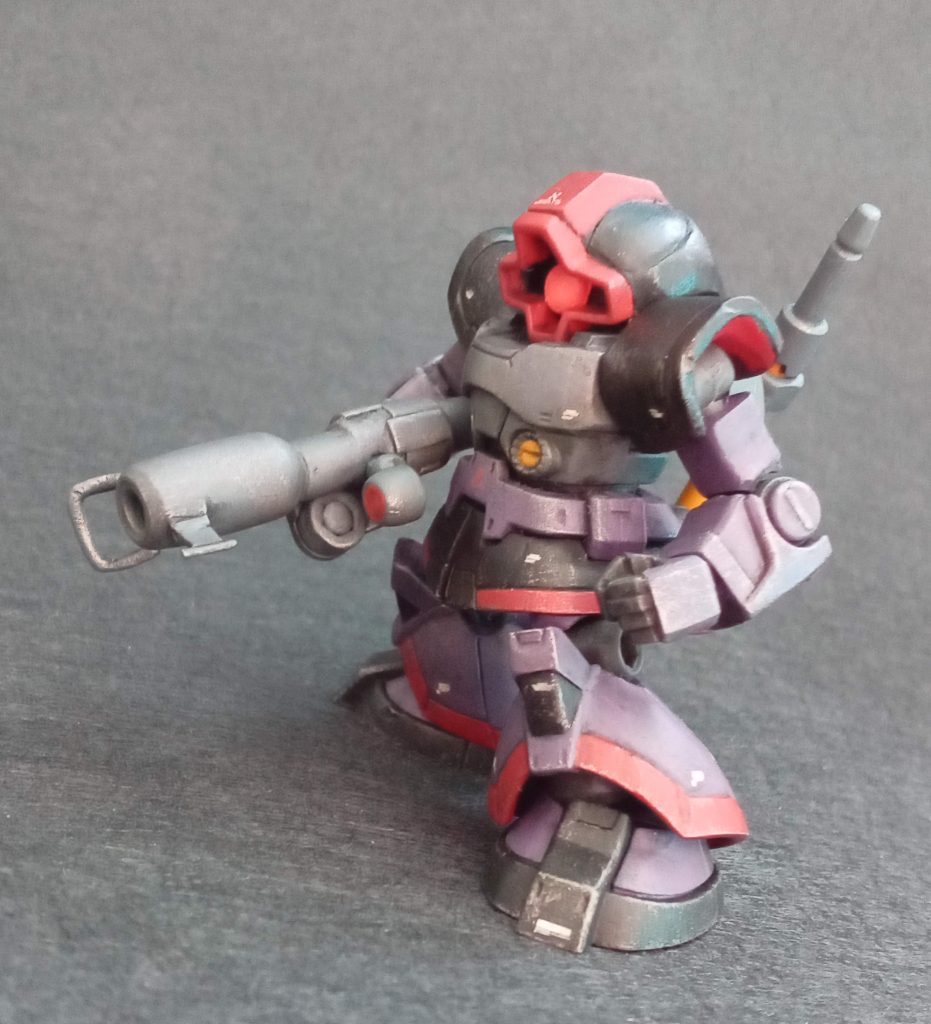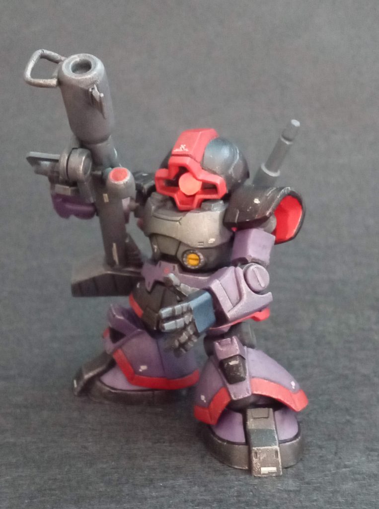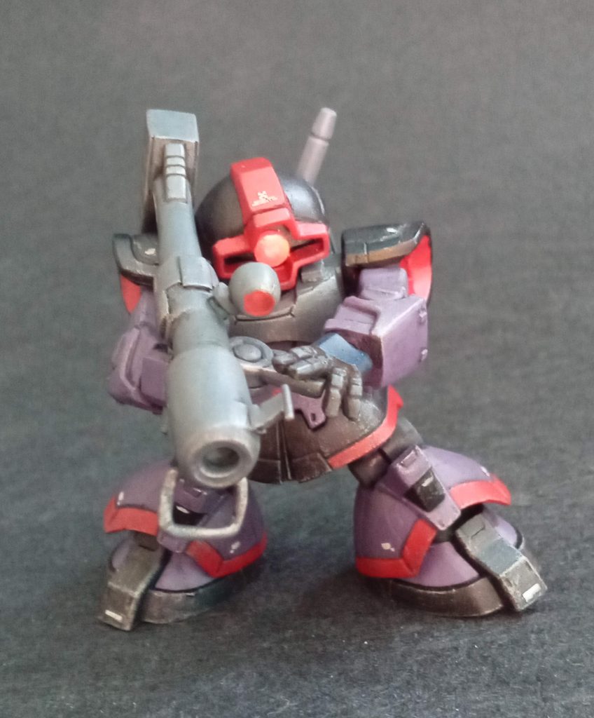 500円のガシャポンなのでしょうがないのですが、バズーカの肉抜きがまず目につきますね。頭部の形が縦に長い、胸部の横幅が頭部の大きさに対して少ない。以上が改修ポイントになりました。大分改善されたと思います。