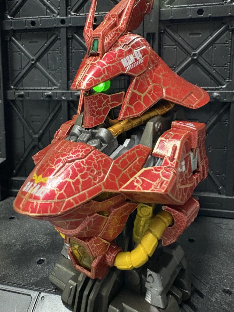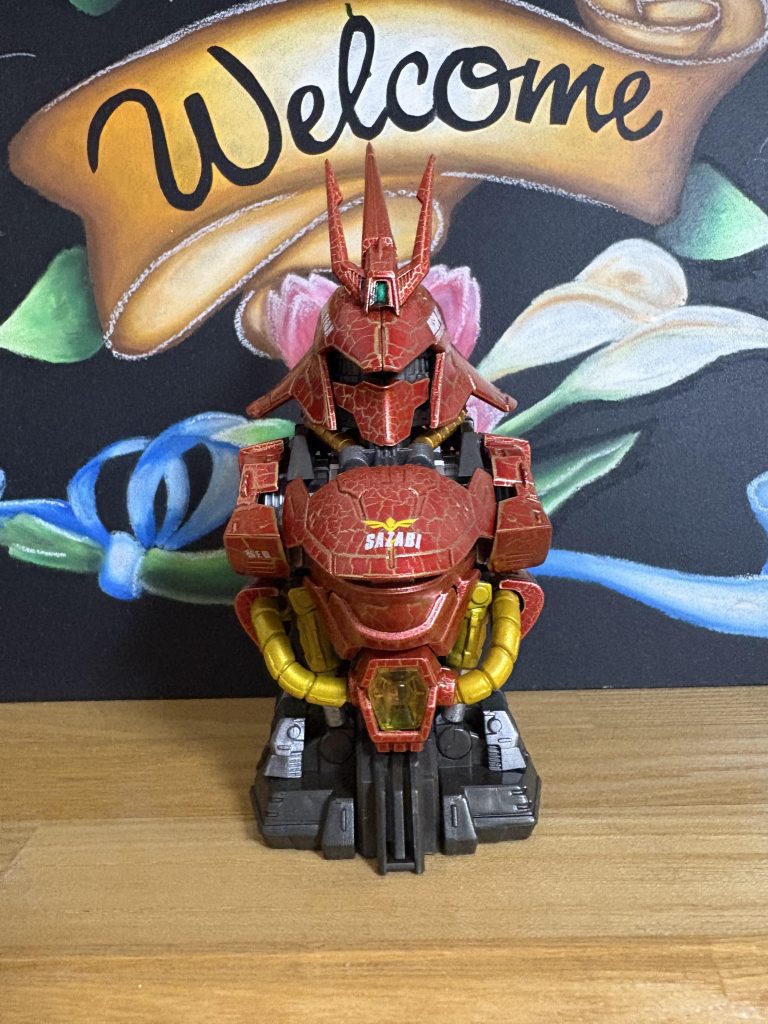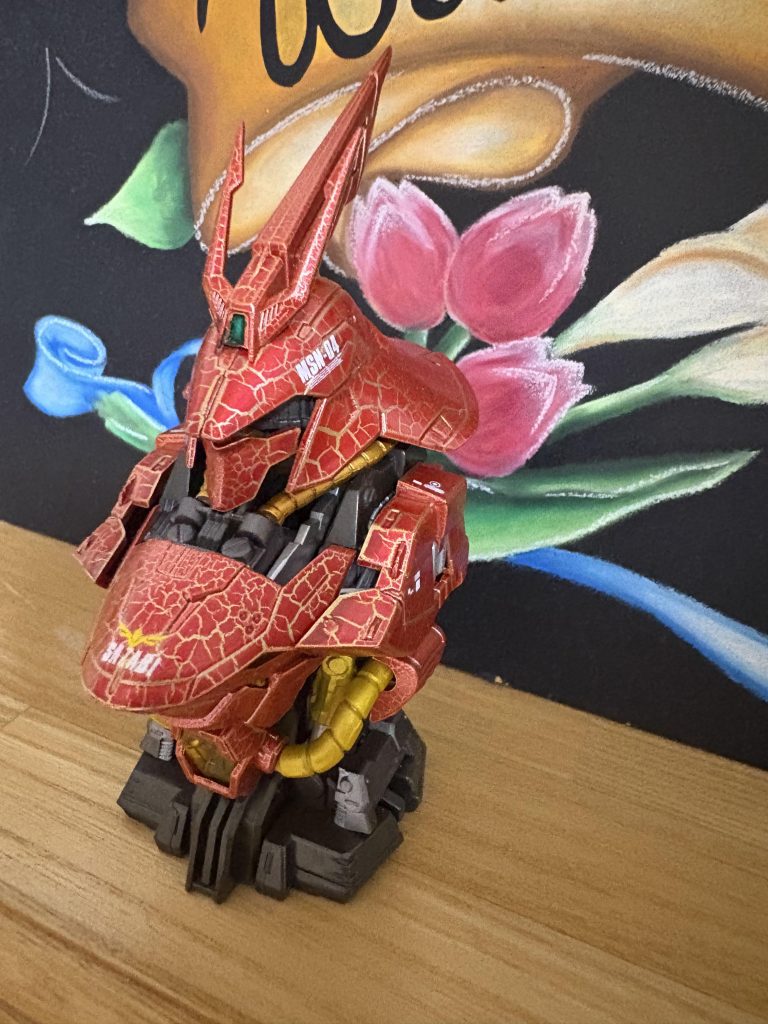 メカニカルバスト サザビーを製作してみました。メタリック塗装で仕上げようとも思いましたが、みんなやっているのでメタリックレッドの隙間からゴールドが覗くクラック塗装で仕上げました。