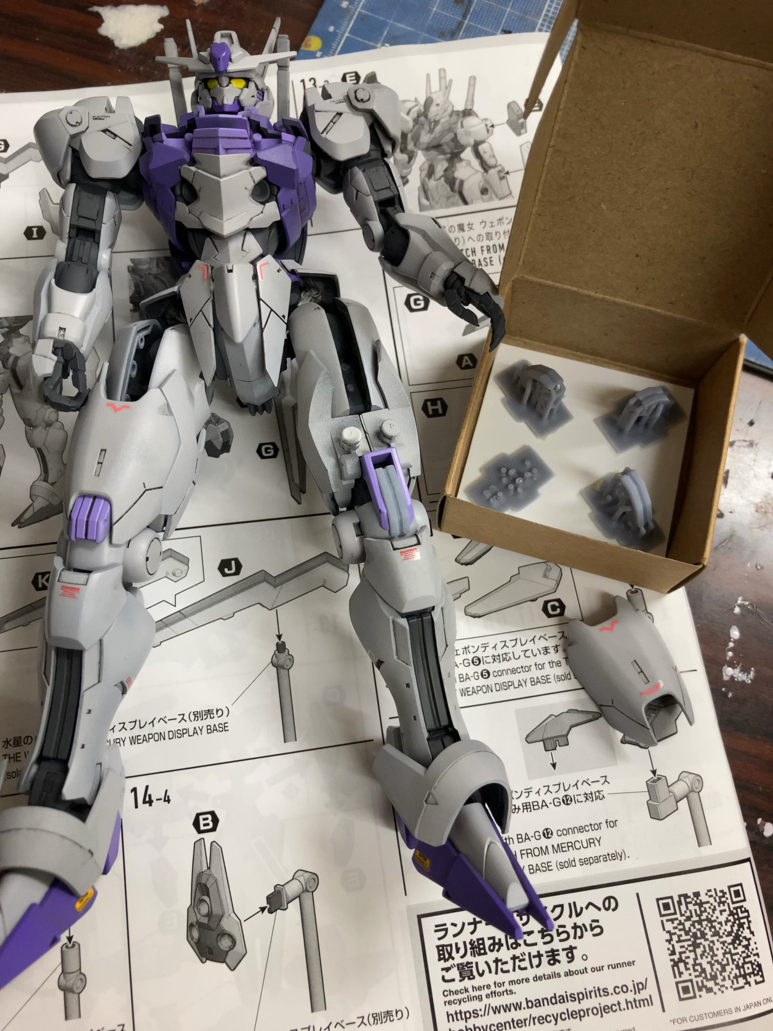 以前ネットサーフィンをしていて見かけたキマリスブースターを装備させたエアリアルを作りたくて自分でも作りました。普段使わないエアブラシを製作スペースで借りて塗りました。