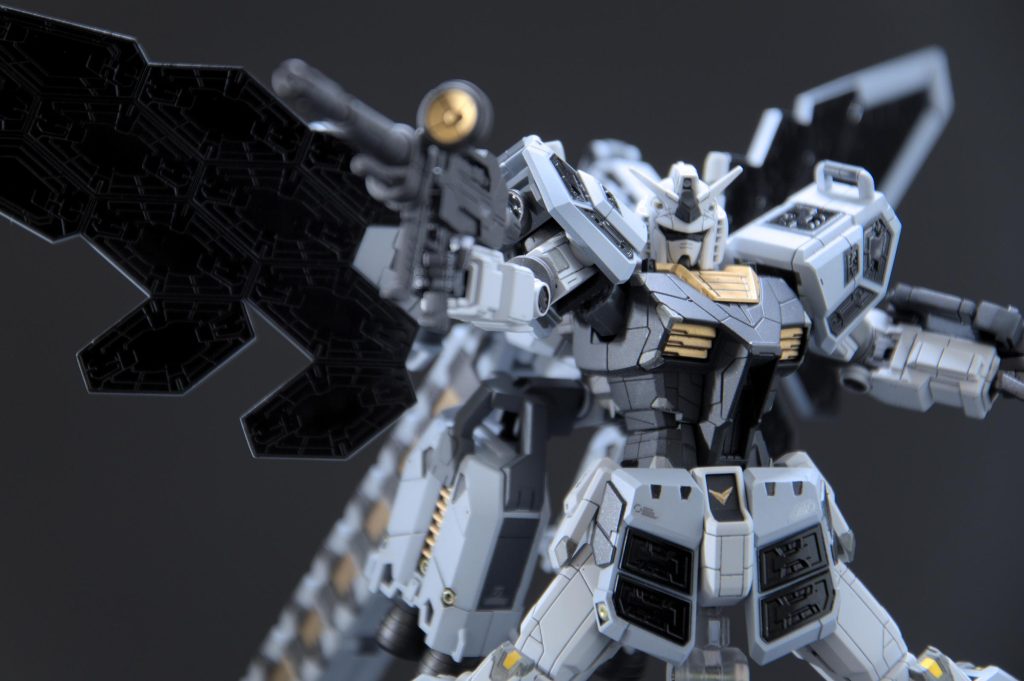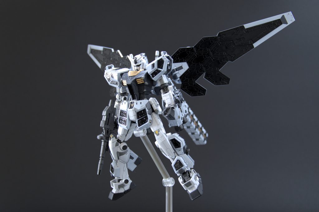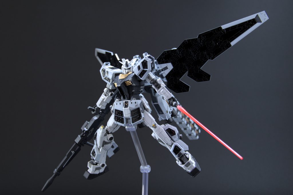 ガンダム本体はEG版、1/144版で形状に差がないので、ほぼ無加工で取り付けることができました。バックパックへの接続が緩いので軸を少しだけ太らせました。