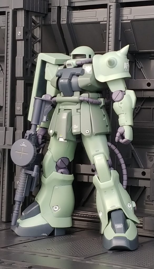 薄いグリーン成形色はフラットホワイトでウォッシング、濃いグリーン成形色はグリーン、グレー部分はフラットブラックでウォッシング。
