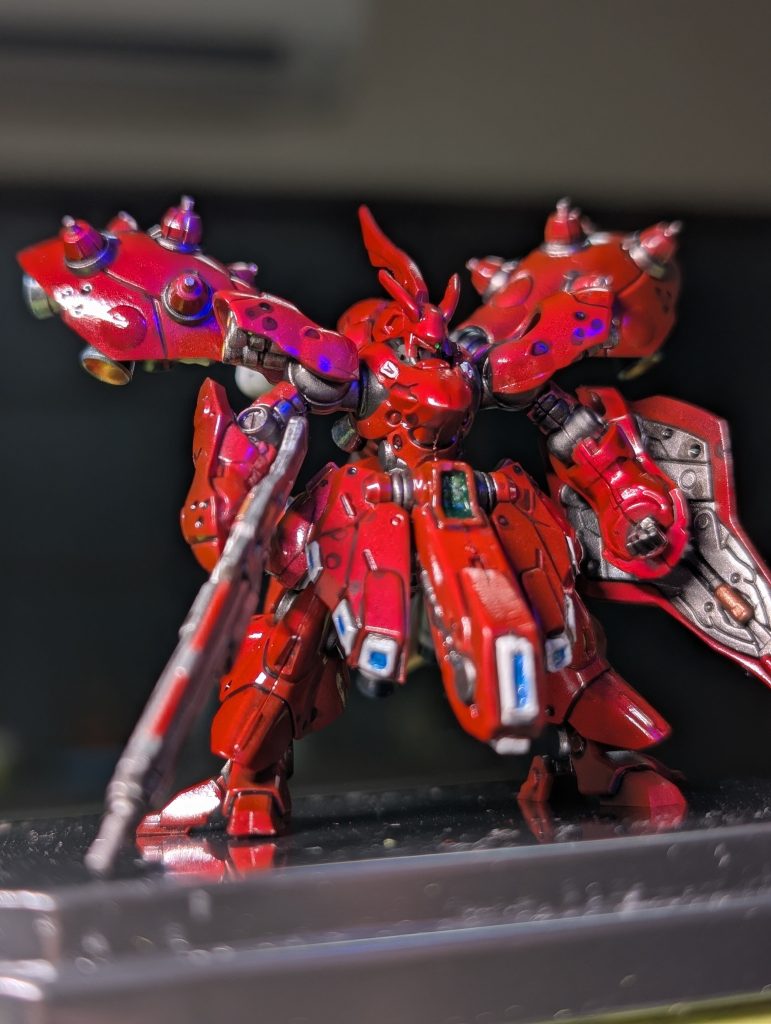 蛍光グリーンを使ってサイコフレームの輝きとモノアイが光る演出をしたかったのですが上手くできのかは正直ビミョーですね…