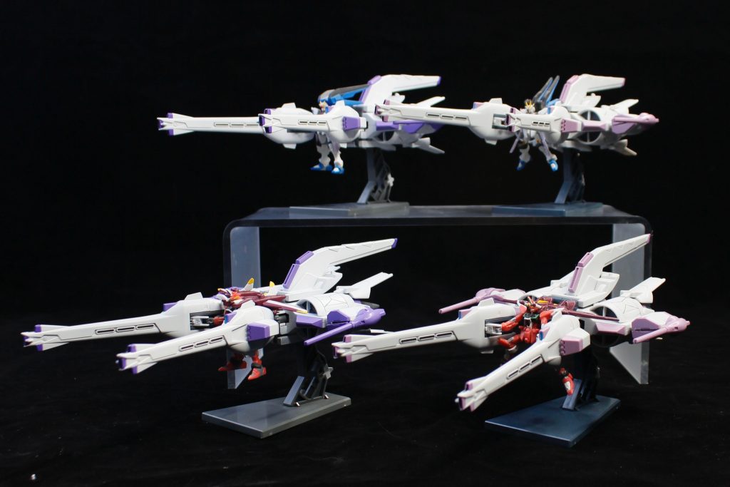 経年黄変したシードバージョンの2機は塗装仕上げ、まだ黄変しないシードデスティニーバージョンの2機は素組み仕上げです。