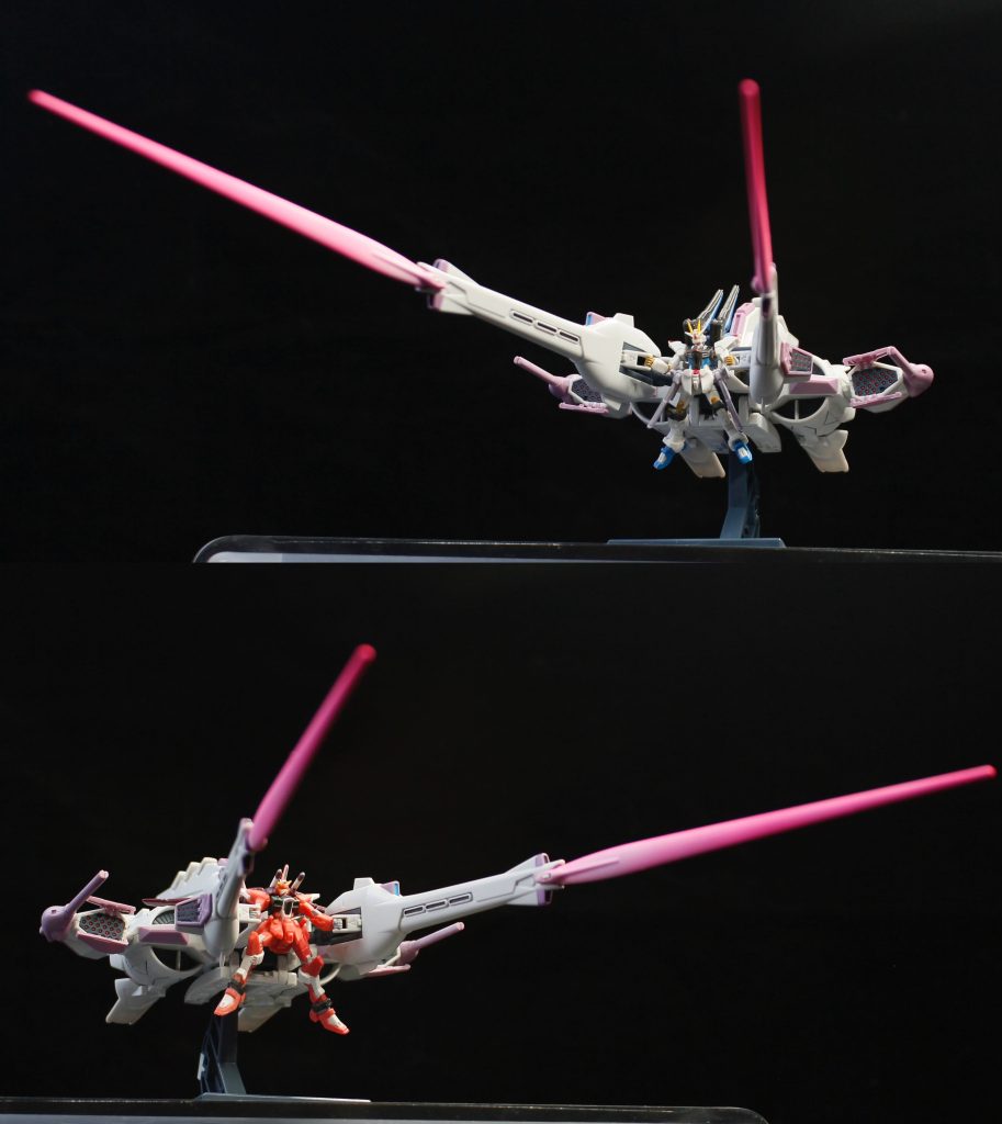 ガンコレ vol.9のフリーダムガンダムとジャスティスガンダムは接続口形状が共通のため、ミーティアユニットへの搭載も可能です。