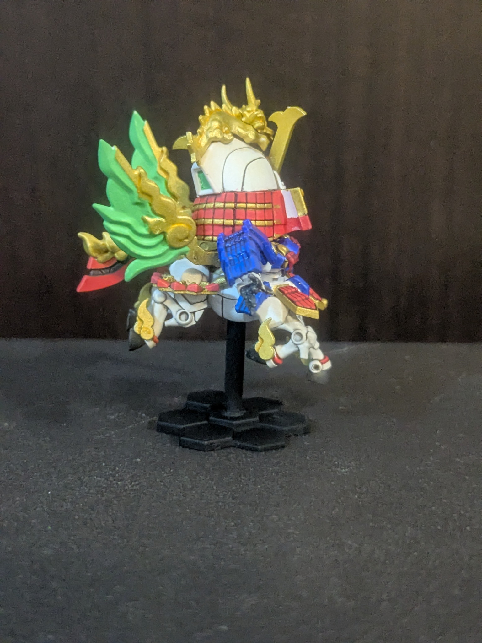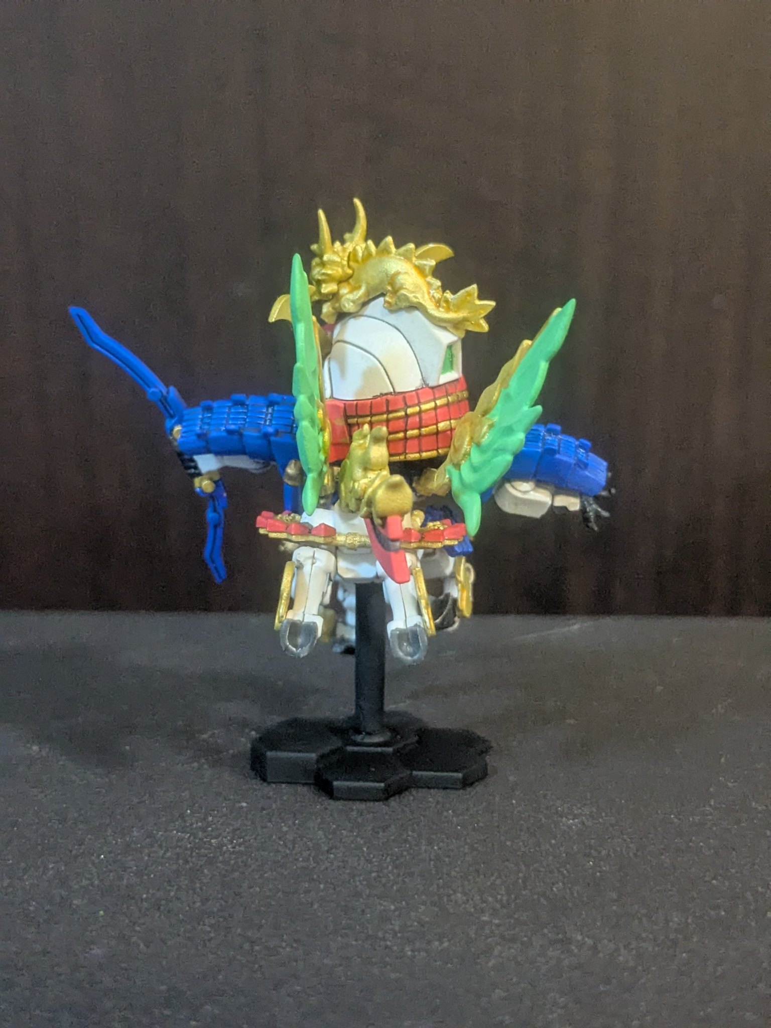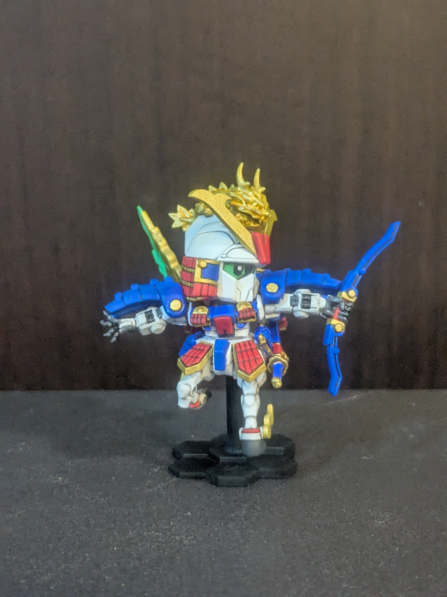 白は白サフ、青はMr.HOBBYの缶スプレーコバルトブルー、赤と金はポスカを使いましたが、確かに塗りムラもなく隠蔽力も問題なかったです。ただ、組み立て途中に胸部の赤が何度か剥げてしまったので、ラッカーで塗り直しました。